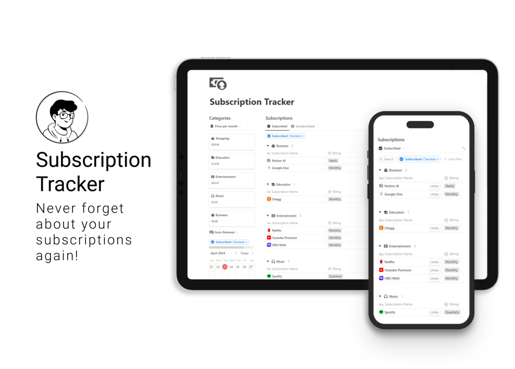 This Notion Template will help you see how much you spend for paid subscriptions. You can set price, billing cycle, categories, and date of start.